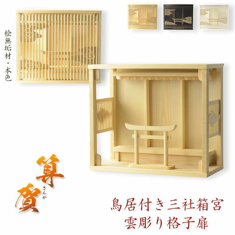 モダン神棚 鳥居付き 算賀 さんが 桧無垢材 本色 km 081 1