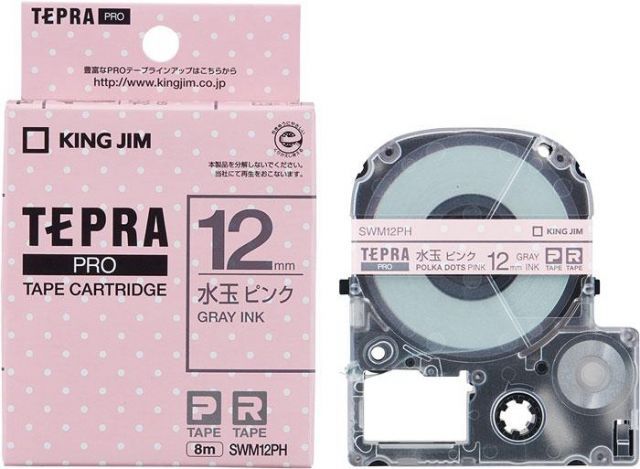 まとめ キングジム 模様ラベル 水玉ピンク グレー文字 PROテープ SWM 12 PH