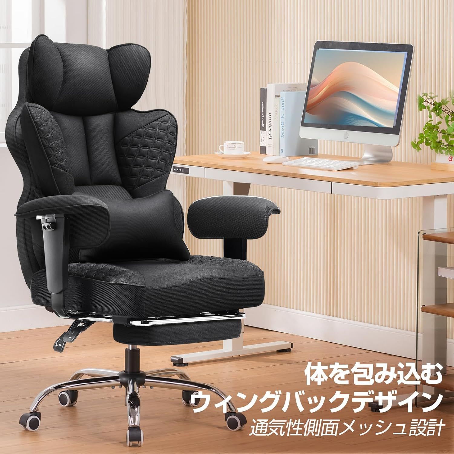 GTRacing ゲーミングチェア オフィスチェア ファブリック 上品な型押しデザイン ポケットコイル内蔵腰当て 腰が痛くならない 椅子 昇降アームレスト 蒸れない ソファーの座り心地 テレワーク 疲れない 社長椅子 JP-CH 510-FBBLK