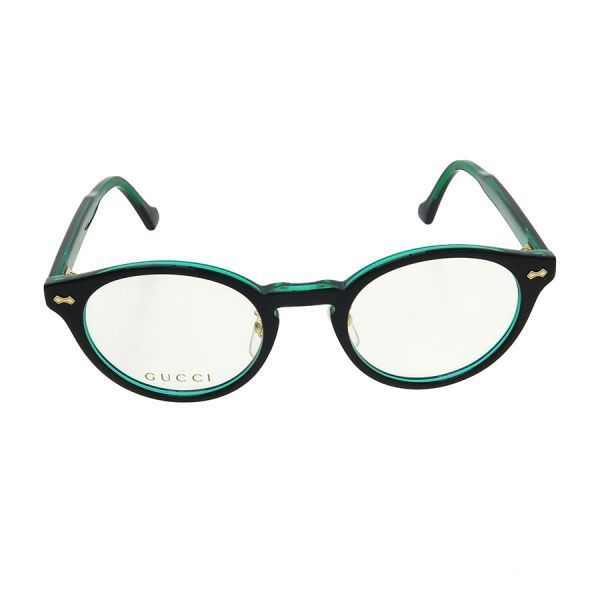 グッチからメガネフレームが入荷しました!ブラックに透け感のあるエメラルドグリーンの組み合わせが洗練されたデザインのメガネフレームです☆全体に極僅かなスレや拭き取りで改善する程度のくすみ、鼻当てにスレ汚れ、右つるに若干の歪みが見受けられる為Bランクでのご紹介となりました。目立つダメージや汚れはなく、まだまだ綺麗にご使用いただけます◎※ダミーレンズが入っておりますので、ご使用前にレンズ交換が必要となります。
