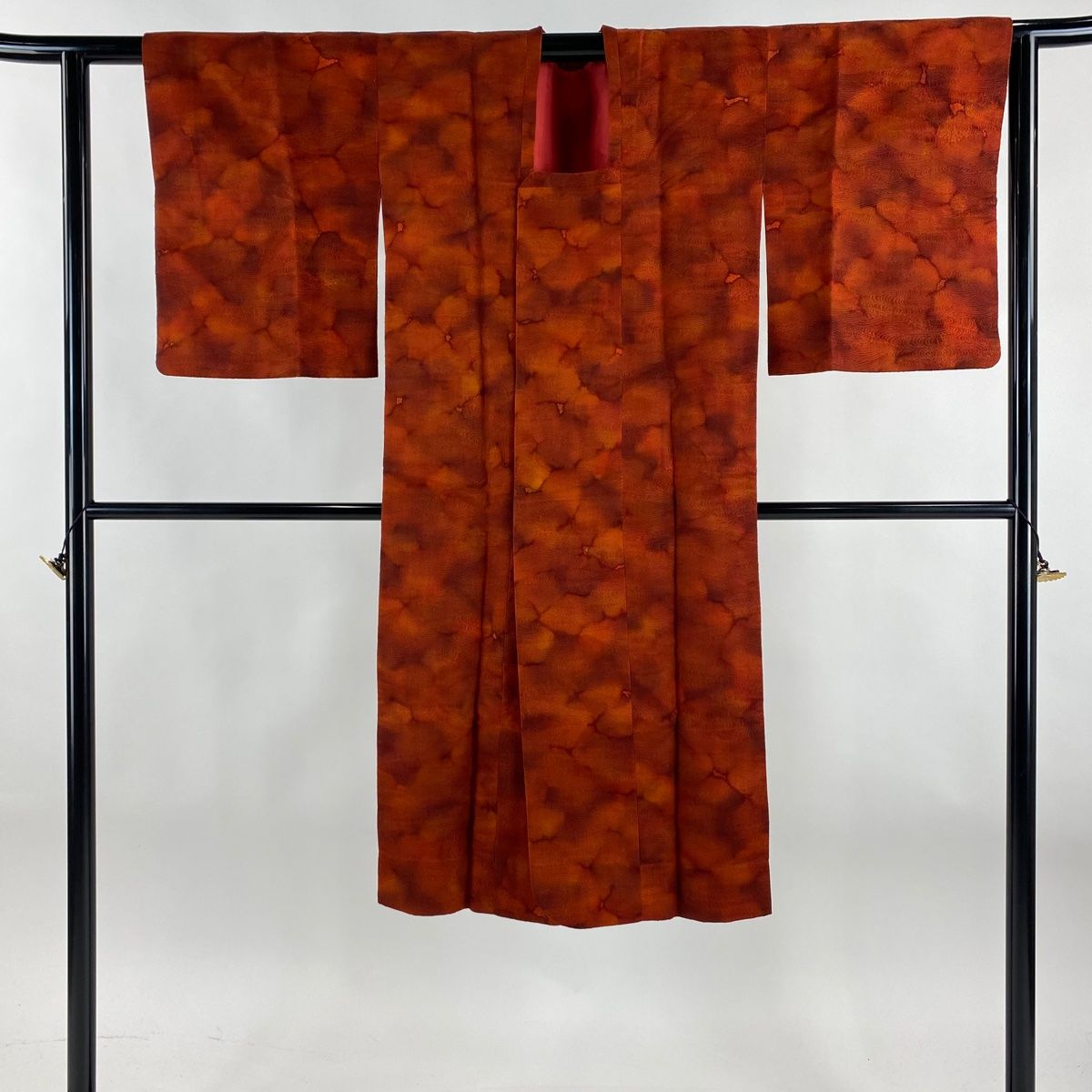道行 身丈120.5 cm 裄丈62 S 和装コート 角衿 波頭 ぼかし 赤茶 正絹 秀品