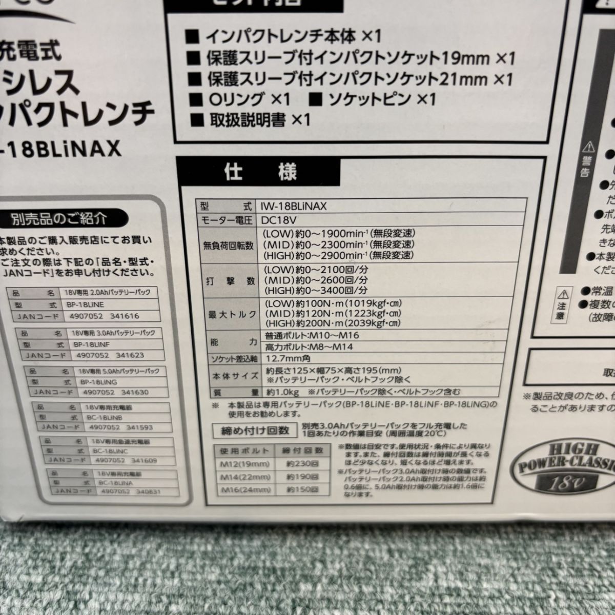 ナフコ IW 18 BLiNAX 充電式 ブラシレス インパクトレンチ V 本体 品