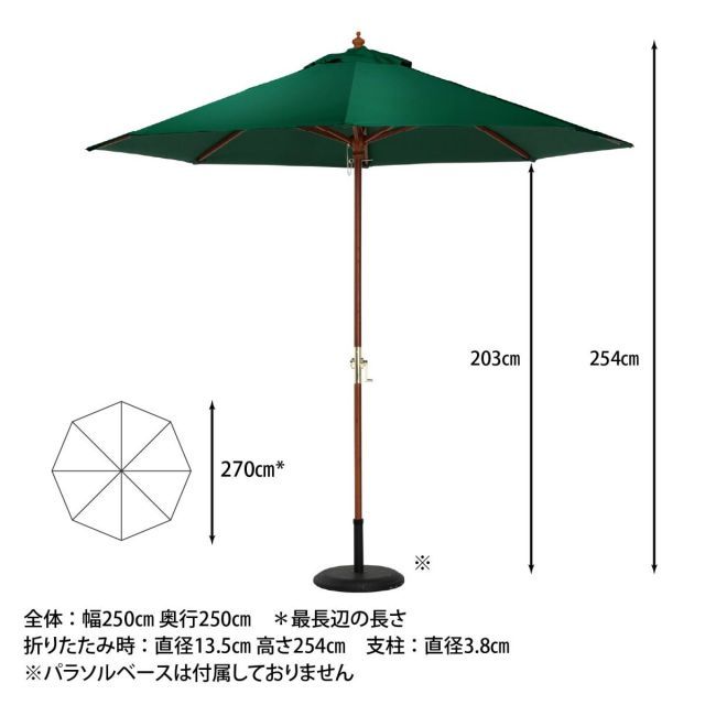 不二貿易 ガーデン パラソル グリーン クランク式 60153 直径270 cm 日除け 木製 庭 傘 傘のみ パラソルベース別売