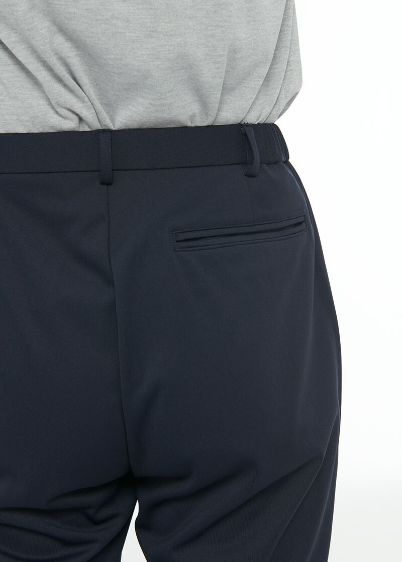 すっきりとしたテーパードシルエットのメンズパンツ。股下丈調整機能付きで機能的にも優れています。