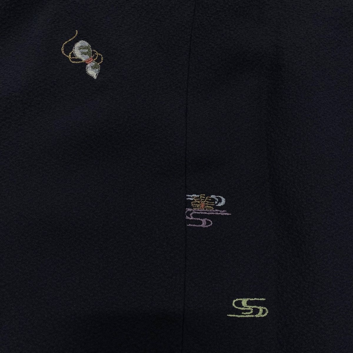 道中着 身丈101.5 cm 裄丈69 L 和装コート 着物衿 瓢箪 観世水 刺繍 金糸 墨色 正絹