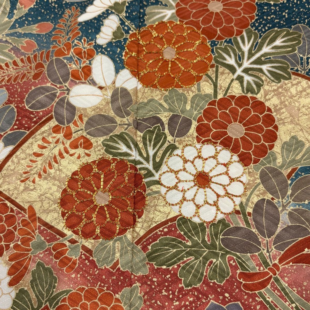 振袖 身丈160.5 cm 裄丈65 M 袷 扇面 草花 金糸 金彩 山吹茶色 正絹 秀品