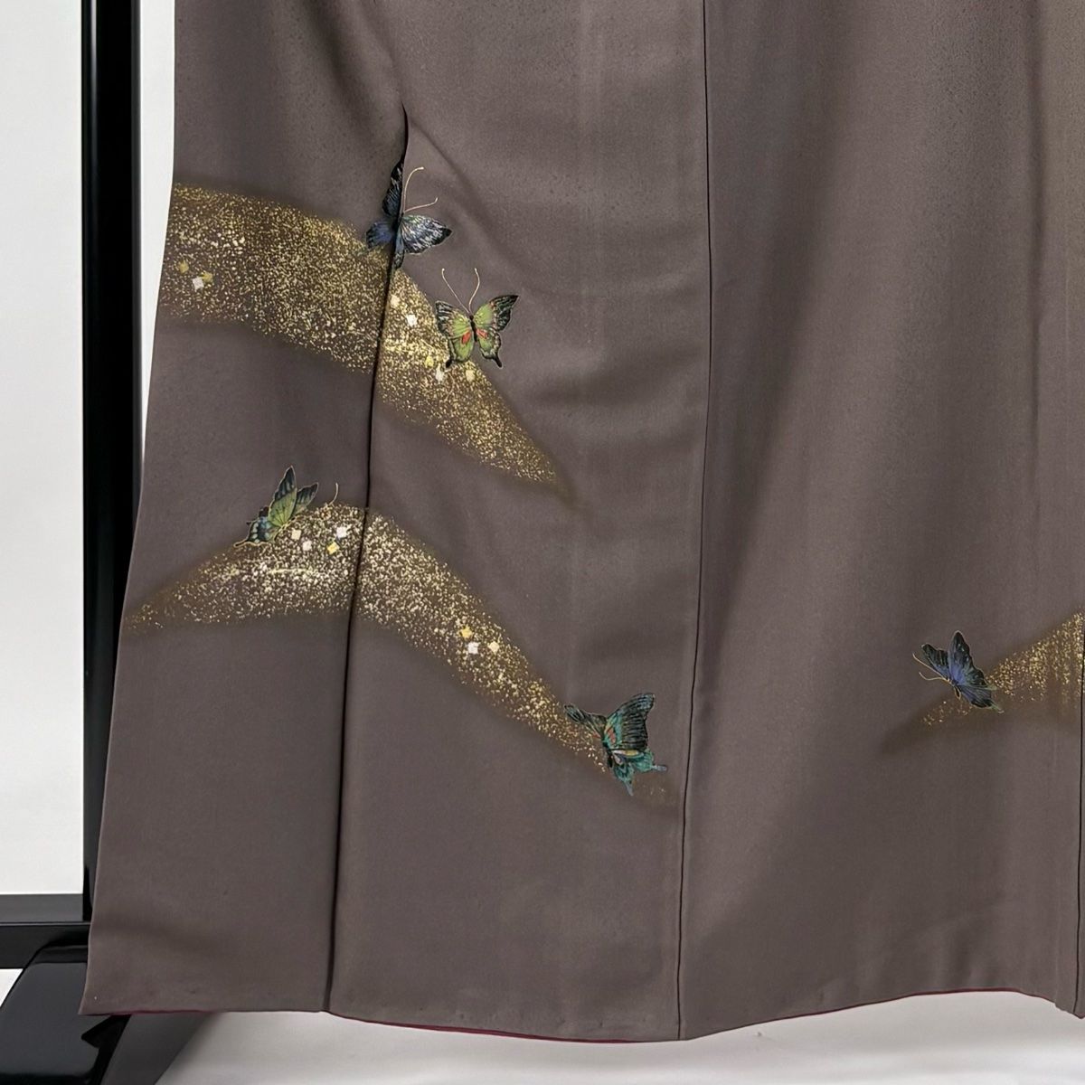 付下げ 身丈163.5 cm 裄丈67.5 L 袷 蝶 箔散らし 刺繍 金銀彩 茶紫 正絹 秀品