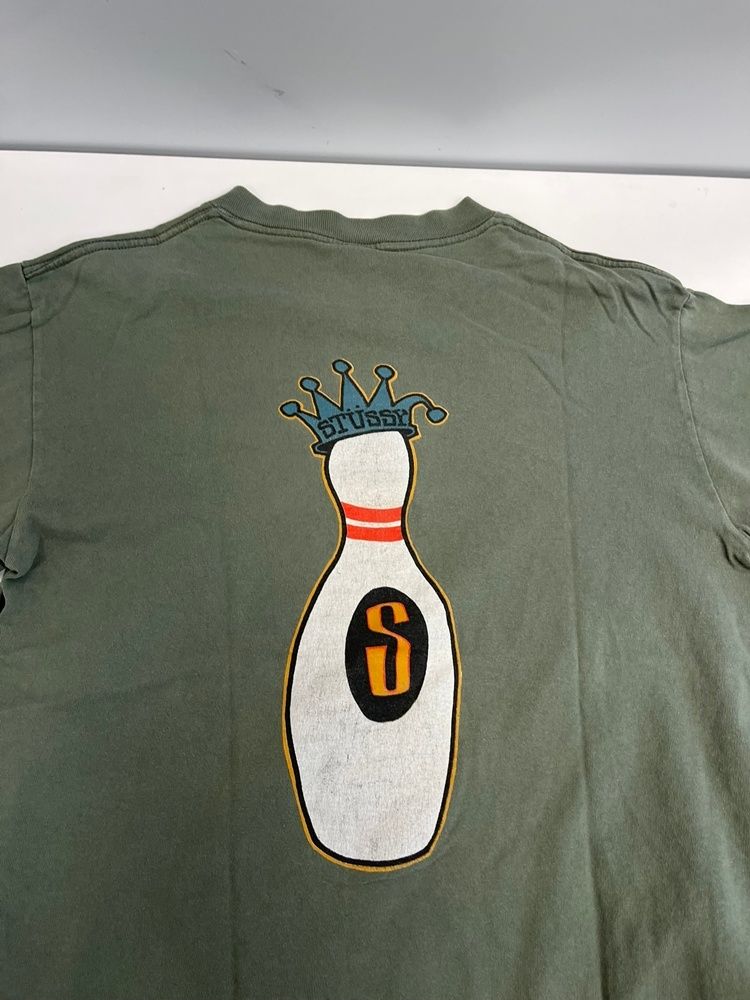 ステューシー STUSSY OLD KINGPIN GEAR ボーリングピン キングピン プリントTシャツ Tシャツ カーキ Mサイズ 101 MT-5177