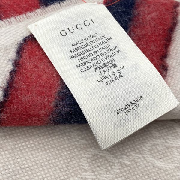 グッチ GUCCI マフラー GGパターン ウェビングライン フリンジ ライトベージュ ウール混 アルパカ混 レディース 5 E 193