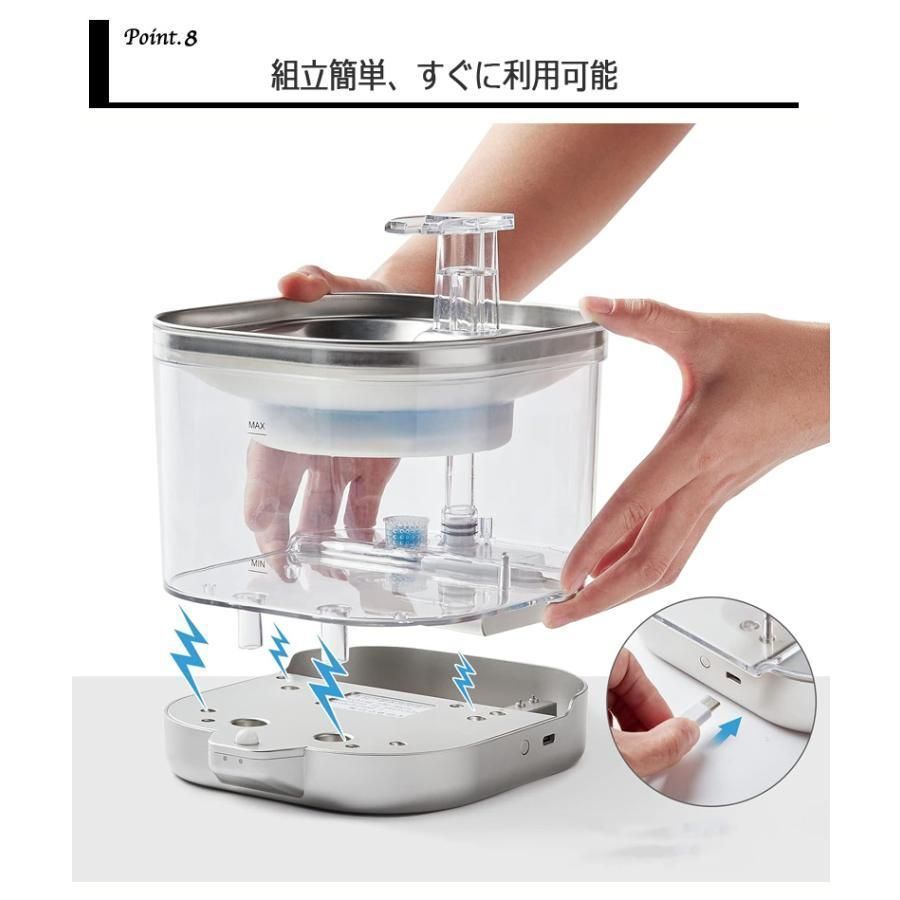 センサー給水器 水飲み器 ペット 自動給水器 コードレス 猫 犬 ステンレス製 超静音 フィルタープレゼント 2 L大容量 多頭飼いも対応 洗いや