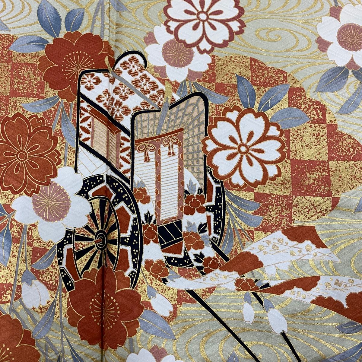 振袖 身丈171 cm 裄丈66 M 袷 御所車 桜 金彩 薄オレンジ 正絹 秀品