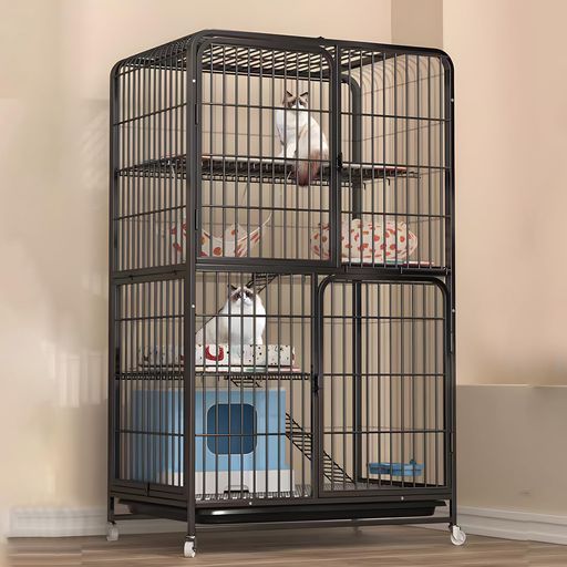 Athvcht猫ケージ猫用ケージ猫ハウス ケージのサイズ85 x 60 175 CM ブラック 室内用大型猫用多頭飼い猫移動便利組立簡単取り外し なペット用品防錆と防食室内飼い猫脱走防止扉キャット留