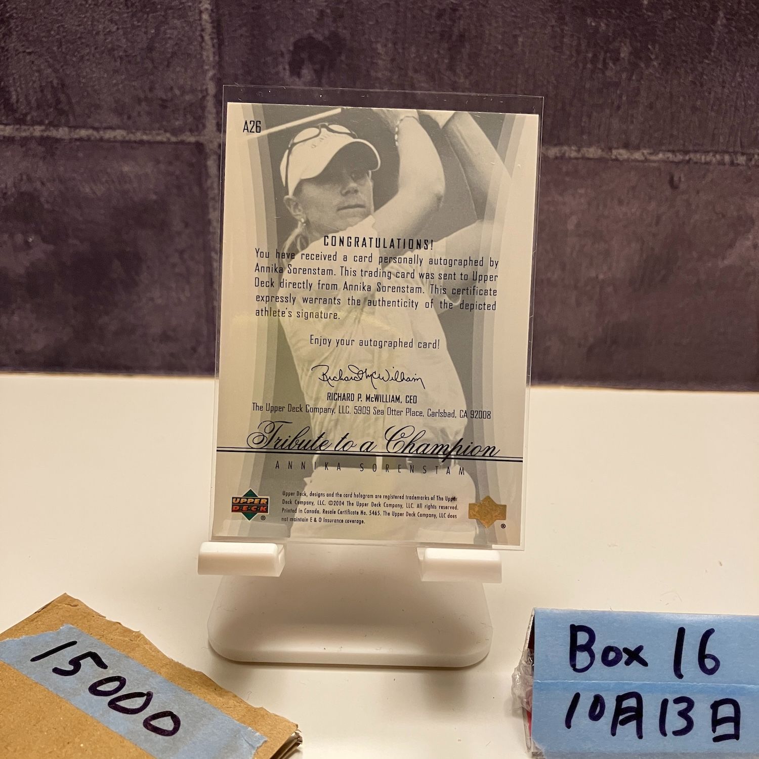 2005 Upper Deck Annika Sorenstam 直筆サインカード Tribute to a Champion カード