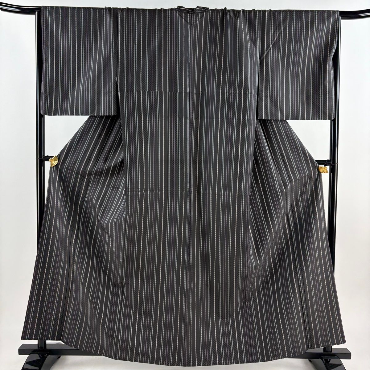 紬 身丈161 cm 裄丈67 M 単衣 縦縞 墨色 正絹