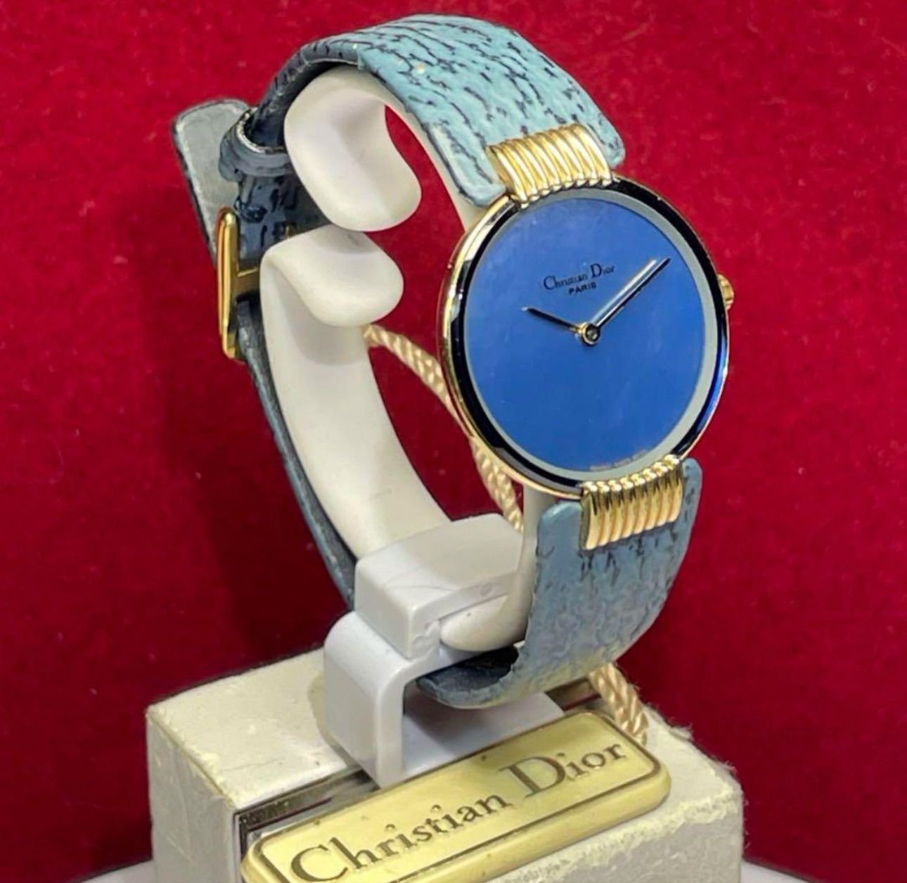 90 s クリスチャンディオール QZ ブルーシェル文字盤 腕時計