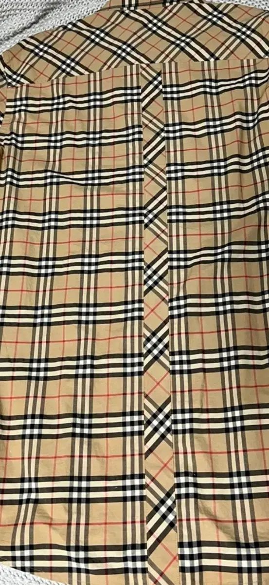 このバーバリーシャツは105から110までのサイズをカバーできます。ベージュトーンのチェック柄が高級感をプラスします。バストポケットにはバーバリーのロゴが刻印されています。