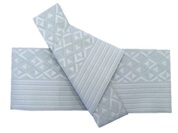 利休味のグレーに古典柄の鱗と縞、お洒落な紳士のワンタッチ角帯!