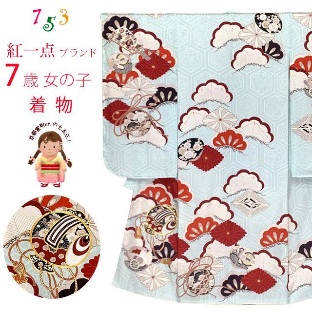 七五三 着物 7歳 紅一点 ブランド 女の子用 正絹 水色系 宝尽くし K 107 SP 42 tan