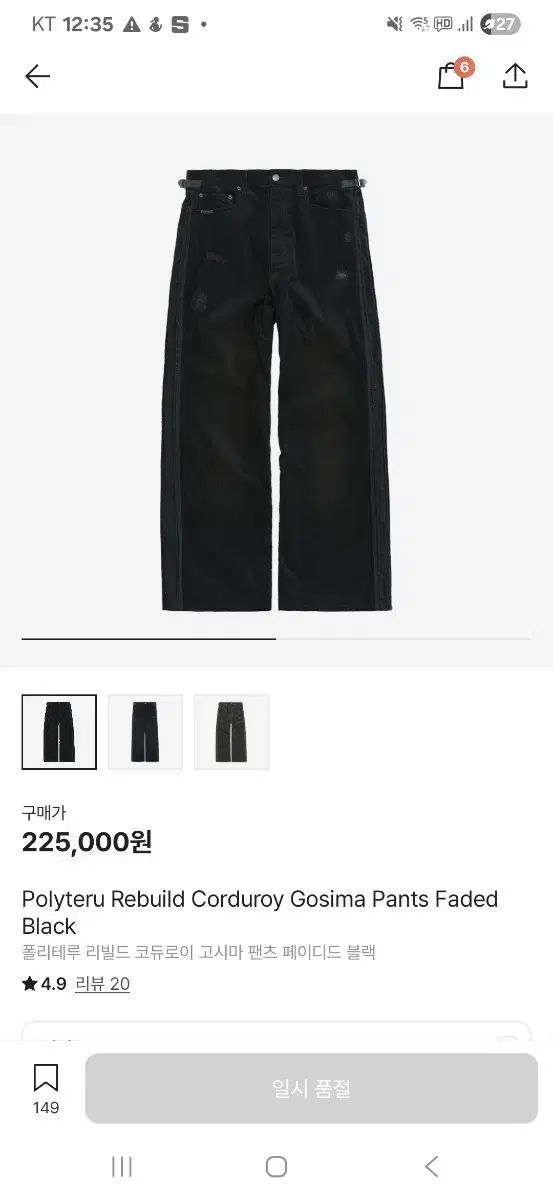 POLYTERU コーデュロイ コシマパンツ フェードブラック