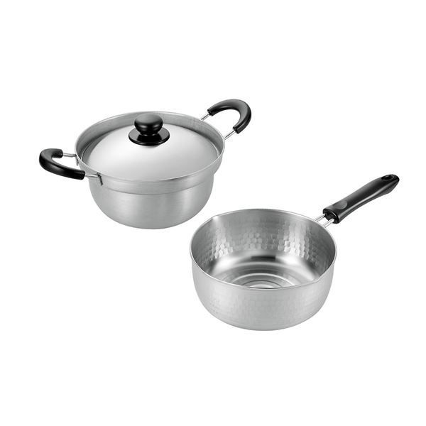 金属加工の街、新潟県燕市の職人が作った職人仕上げの両手鍋と行平鍋の2点セットです。