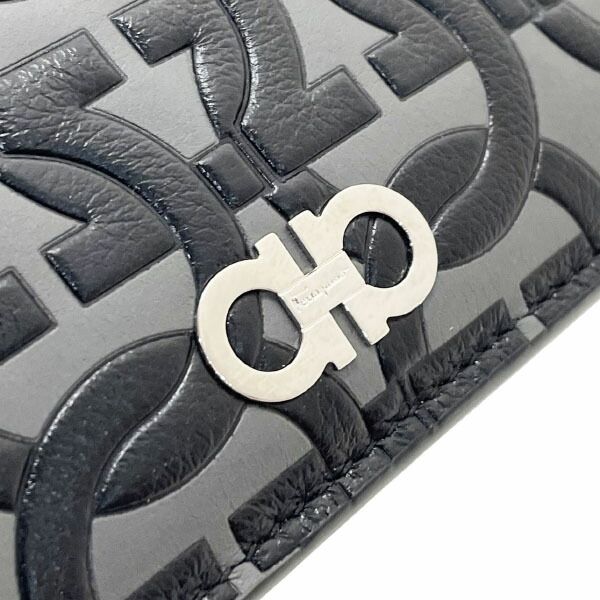 サルヴァトーレ フェラガモ カードケース ガンチーニ L字ファスナー コンパクト財布 レザー 革 グレー ブラック 黒 66 1081 Salvatore Ferragamo カードホルダー カード入れ 札入れ ミニ財布 ミニウォレット コインケース