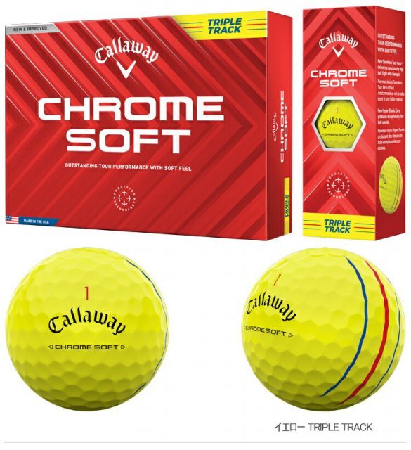 飛距離性能とグリーン周りでのコントロール性能を、バランス良く、ハイレベルで備えたCHROMESOFTXボールが、名前を「CHROMETOURXボール」に変えて、さらにパフォーマンスアップを果たしました。新しいハイパー・ファストソフト・コアは、素材の配合の再考や徹底した生産管理により、プロや上級者が望む打感を従来以上に突き詰めつつ、ロングショットでの高いボールスピードを実現。弾道の頂点から落ち際までを徹底的に分析して生まれた、モデル別専用設計のシームレス・ツアーエアロも、ビッグキャリーで大きな飛びに貢献しています。新たにハイパフォーマンス・ツアーウレタンソフトカバーと名づけられたカバーは、より柔らかくなり、ショートゲームでのスピン量も増大。プレシジョンテクノロジーへの引きつづきの投資によって厚みも均一化され、ショットごと、個体ごとの結果のバラつきも軽減されています。ラインアップはCHROMESOFTボール同様、カラーやアライメント別に計3種類です。