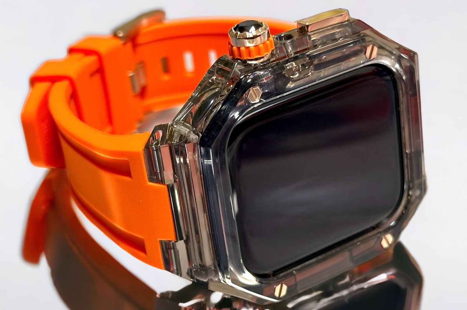 ローズゴールド ブラッククリア オレンジ アップルウォッチ ラバーベルト カバー クリア ケース 40 mm 41 44 45 4 5 6 7 8 9 se スポーツ メンズ レディース 4スクリュー Apple Watch バンド