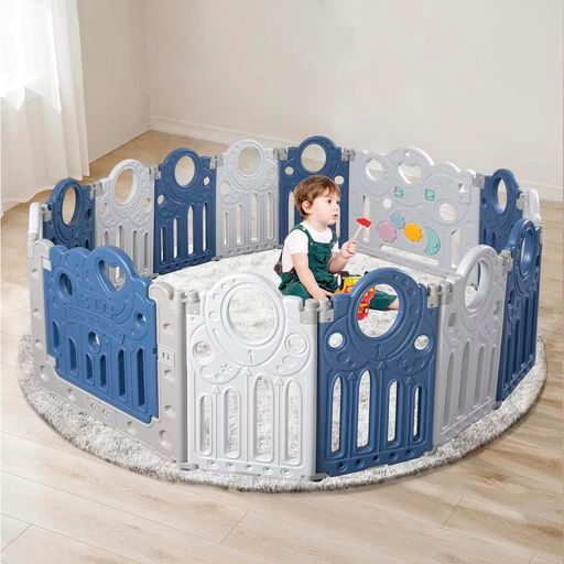 ベビーサークル折りたたみ扉-おもちゃパネル140 x 140 63 cm赤ちゃん子供サークルベビーフェンスコンパクト収納便利形状は自由に調整できます セット ブルー ホワイト グレー