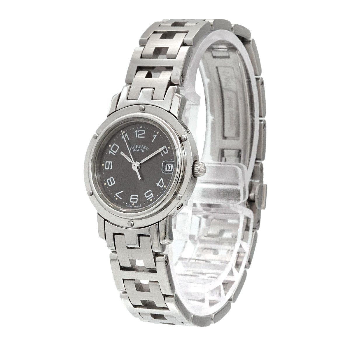 エルメス HERMES クリッパー CL 4 210 ヴィンテージ レディース 腕時計 デイト グレー クォーツ ウォッチ Clipper