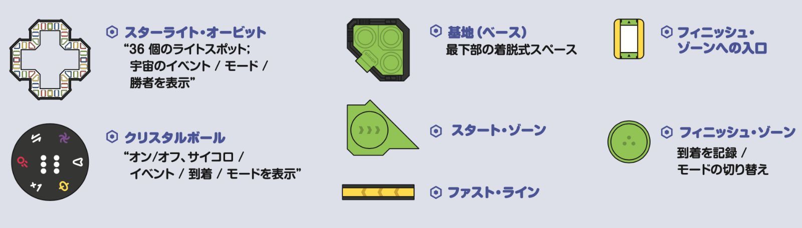 3隻の宇宙船すべてをフィニッシュ・ゾー ンに到達させた最初のプレイヤーが勝者となります。