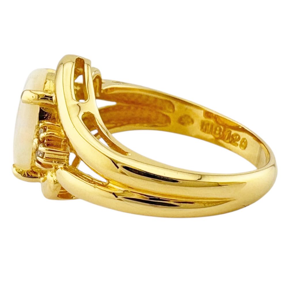 大粒のホワイトオパールをメインに、ダイヤモンドを添えた華やかなK18イエローゴールドのリングです。