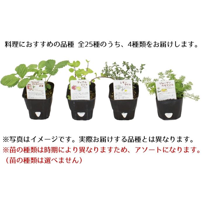 ・ハーブは、料理におすすめの品種 全25種のうち、4種類をお届けします。