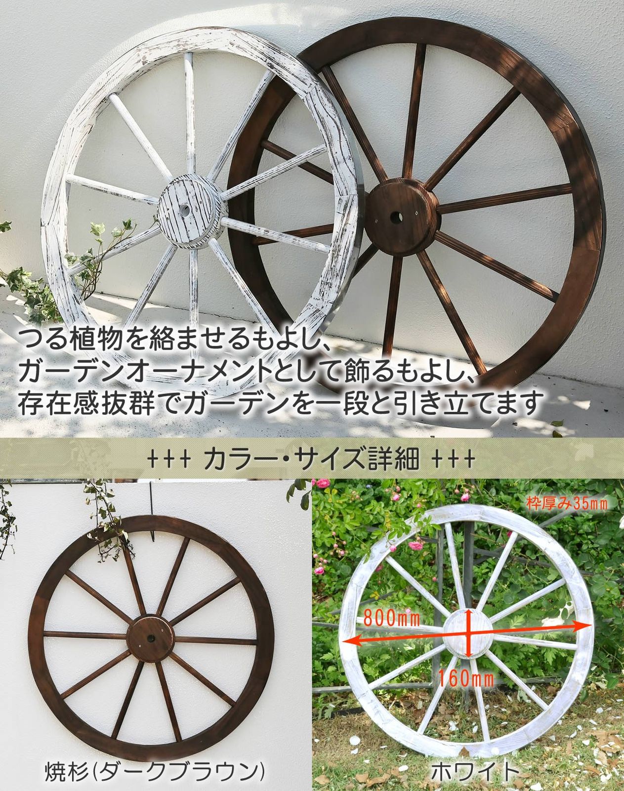 ガーデンガーデン 天然木製 車輪トレリス アンティークホワイト 直径80cm×厚さ35mm アンティーク調仕上げ WT-80WHT