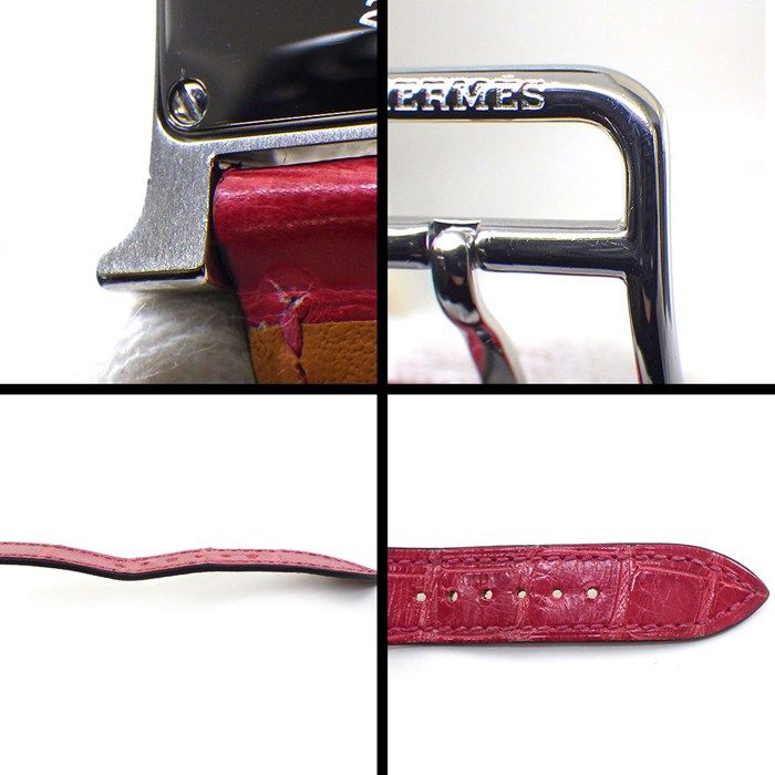 エルメス HERMES 腕時計 Hウォッチ HH 1.210 スクエア アイボリー ギョーシェ文字盤 SS ピンク アリゲーター レザーベルト クオーツアナログ