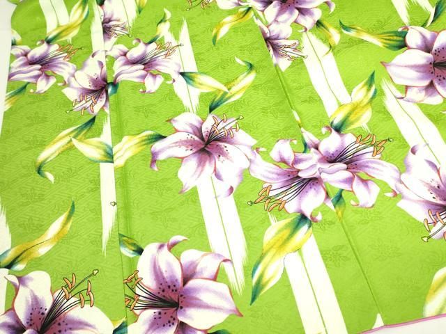 平和屋着物 小振袖 二尺袖 手描き 百合 ユリ 洗える着物 op