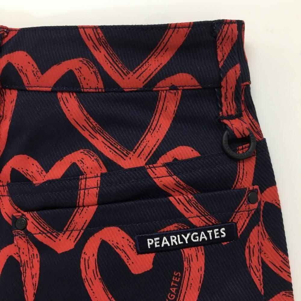 パーリーゲイツ パンツ ネイビー×レッド ハート柄 ロゴ刺しゅう レディース 00 XS ゴルフウェア PEARLY GATES