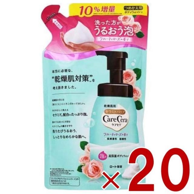 商品名:ケアセラ 泡の高保湿 ボディウォッシュ つめかえ用 フルーティローズの香り 385ml ロート製薬 フルーティローズ 詰め替え 詰替え 20個