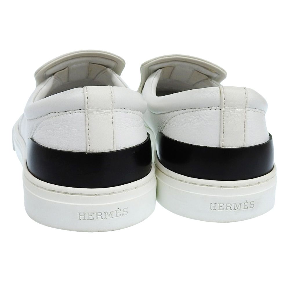 エルメス HERMES スリッポン 40 1 2 約25.5 cm メンズ スニーカー 靴 レザー ホワイト パンチング H ロゴ