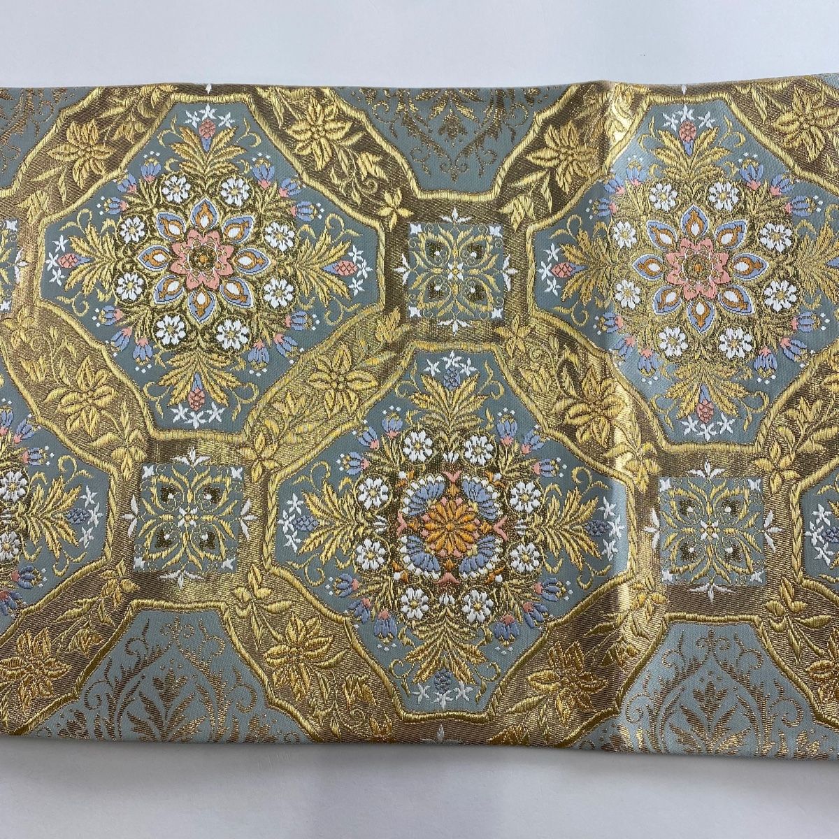 袋帯 秀品 華文 金糸 箔 薄緑 六通 正絹