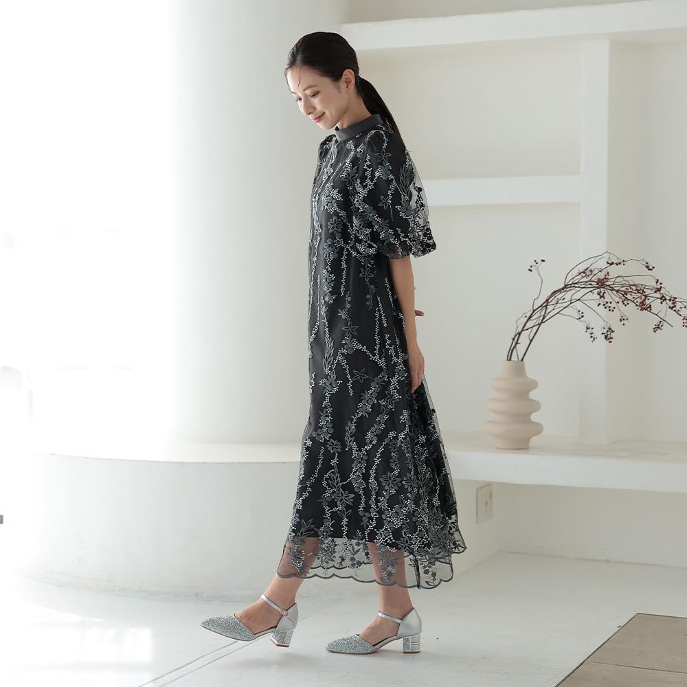 [MORE AUNI] 結婚式 ドレス パーティードレス ワンピース レディース 結婚式に着て行く お呼ばれ 花柄 刺繍 レース 披露宴 324241 (CHC M)