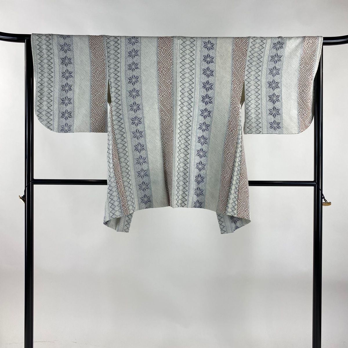 羽織 身丈80.5 cm 裄丈65 M 麻の葉 斜め格子 絞り 灰白 正絹 秀品