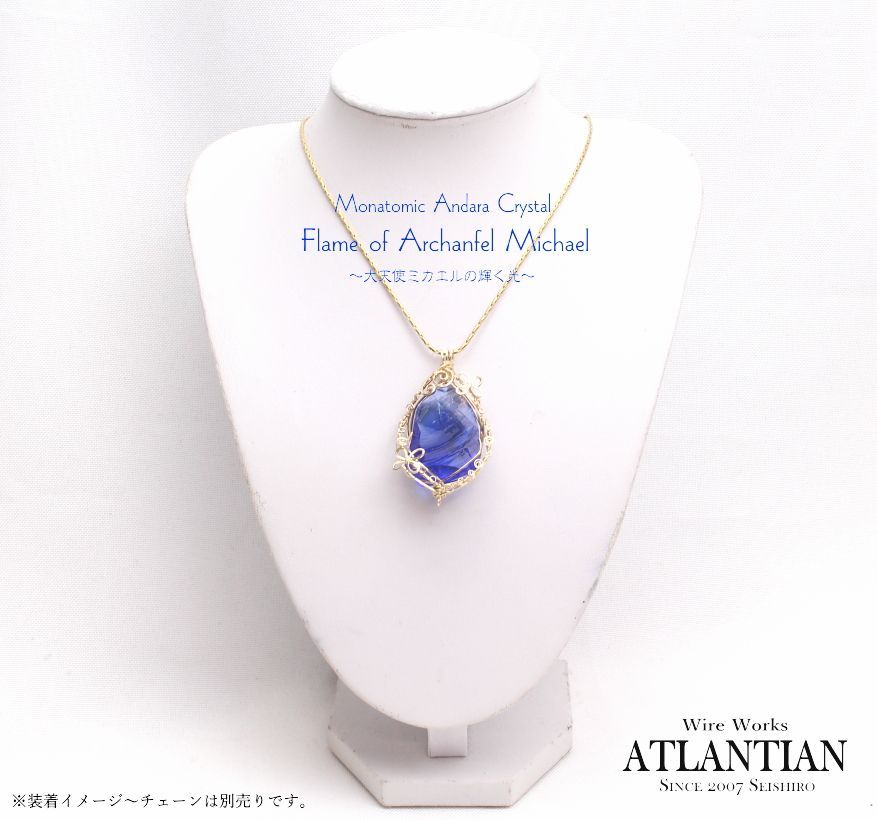 アンダラクリスタルの色味は光を纏ったようなブルーの「フレイムオブアークエンジェルミカエル(大天使ミカエルの輝く光)」となります。