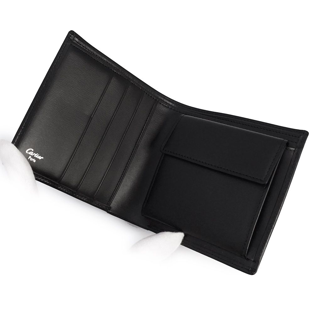 カルティエ パシャ ドゥ 二つ折り財布 カウハイドレザー ブラック シルバー金具 Cartier