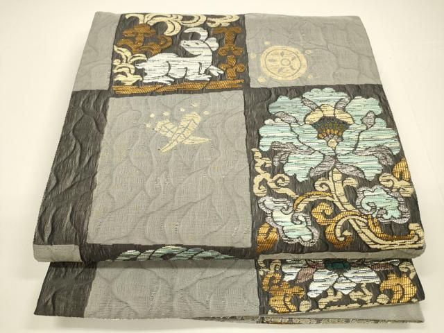 平和屋着物 スリーシーズン 春夏秋 六通柄袋帯 枠楽 櫛織 宝尽くし動物花文 金銀糸 正絹 cm