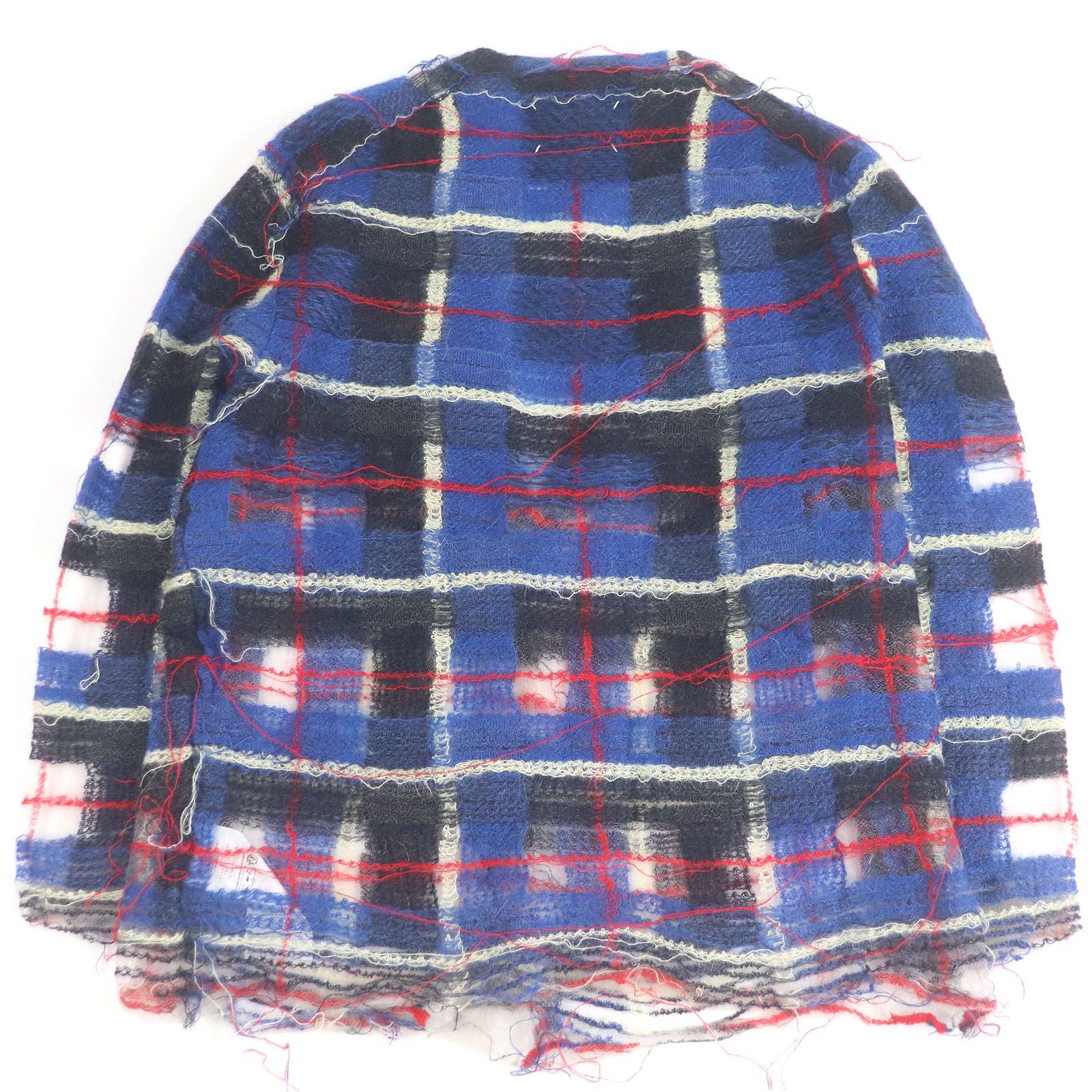Maison Margiela メゾンマルジェラ 23 AW モヘア混 チェック柄 ニットカーディガン ブルー系マルチ S イタリア製 メンズ
