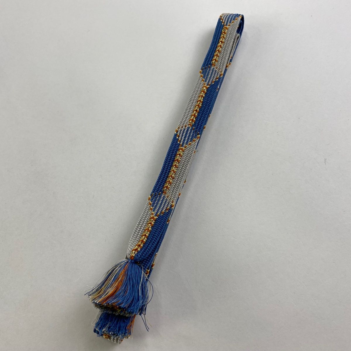 帯締め 無形文化財 有職組紐 道明 幾何学 金糸 青 正絹 和装小物