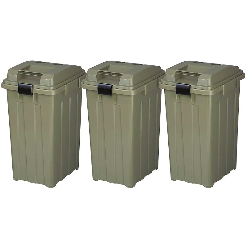 co jp TONBO 新輝合成 Shinki Gosei トンボ ゴミ箱 ハンドル付 45リットル カーキグリーン セット 幅33 5 奥行41 高さ60 cm 蓋付き 分別 丈夫 屋外 ベランダ 大きい アウトドア