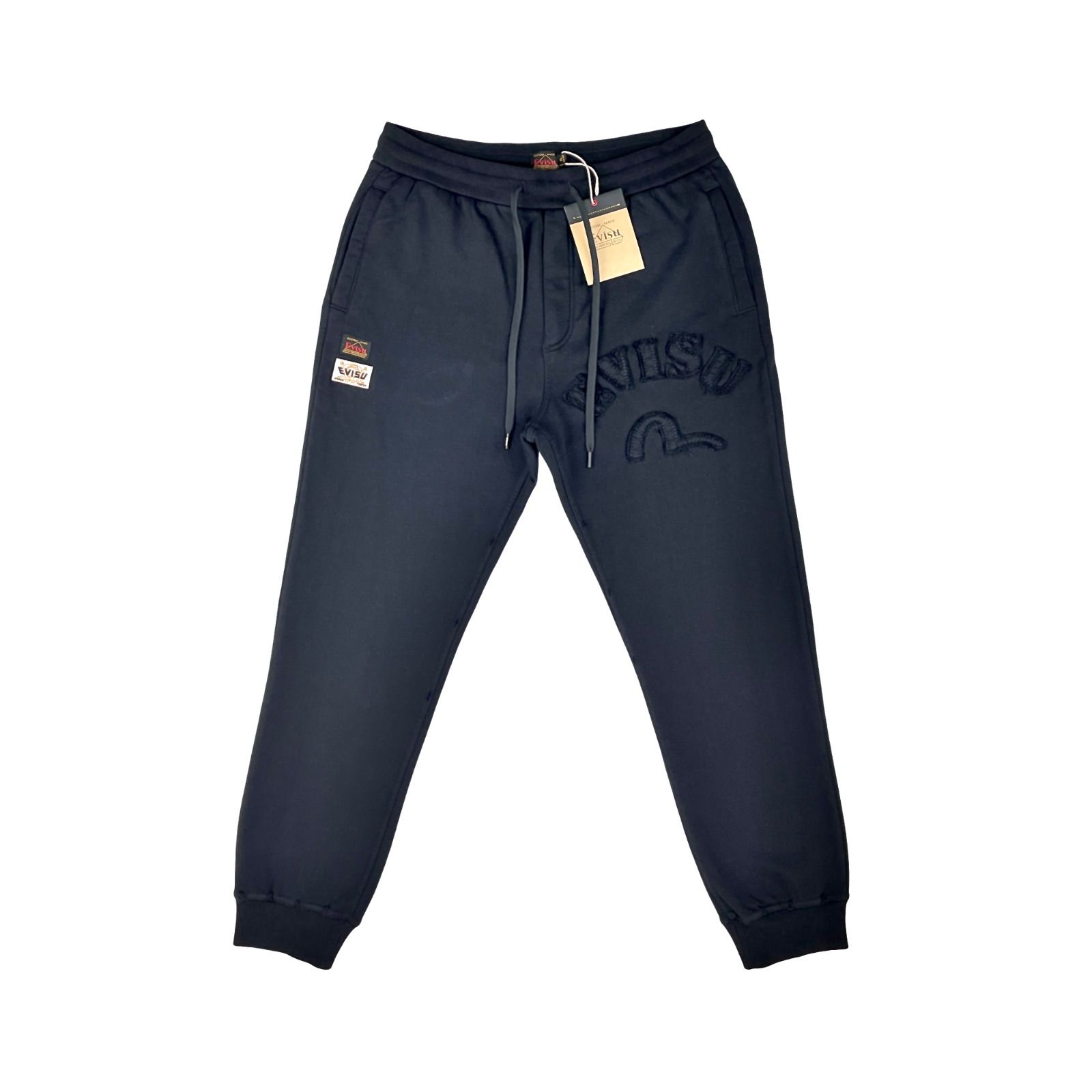 EVISU HERITAGE エビス エヴィス ヘリテージ カモメ ステッチ パッチワーク ダメージ加工 ヘビーウエイト カレッジ スウェット ジョガーパンツ 黒 ブラック 大阪 ストリート ジャパン デニム ジーンズ ブランド パリ 海外