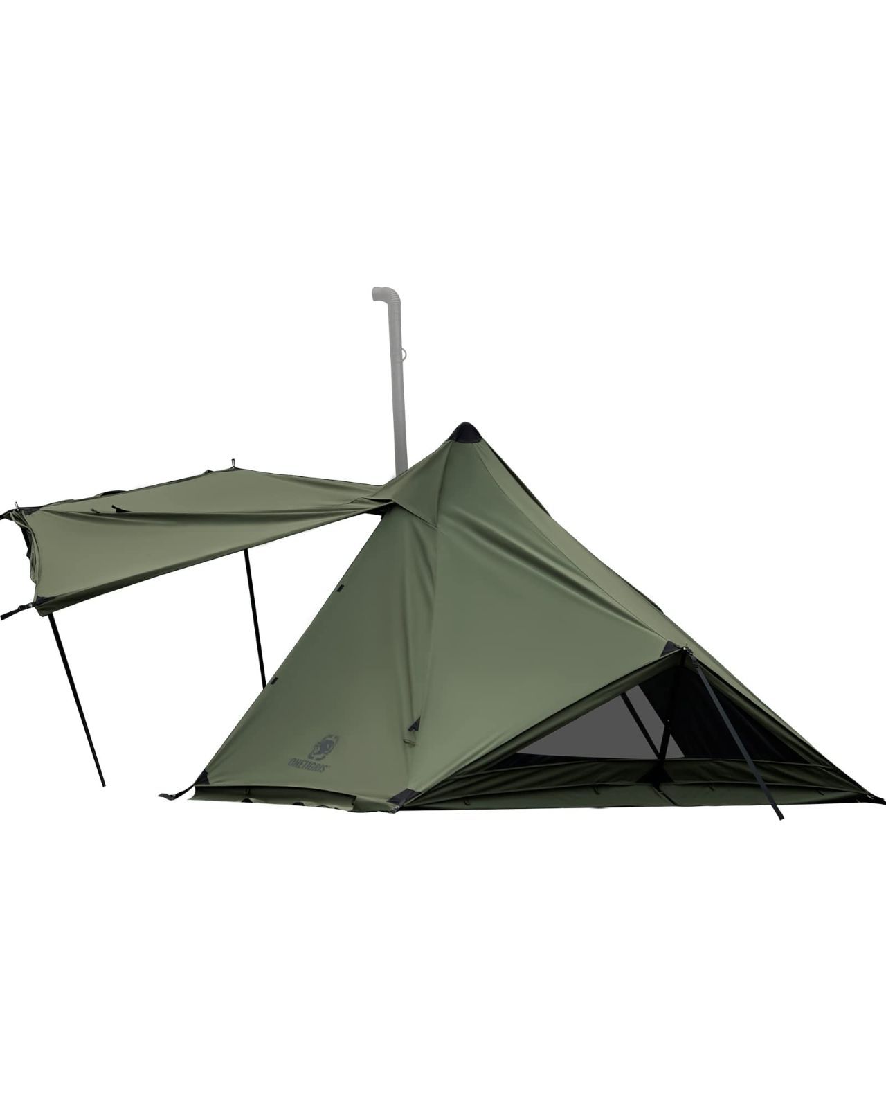 アーミーグリーン OneTigris CONIFER テント ソロテント 軍幕テント ポリコットンT C 二股ポール 二又フレーム 煙突穴付き 焚火可 撥水 通気 遮光 簡単設営 1 2人用 キャンプ用 アウトドア