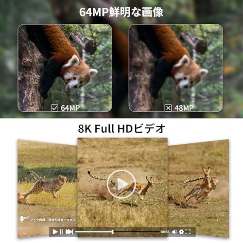【WIFI対応&高画質8Kビデオ&64MP鮮明画像】スマホアプリでビデオや写真がすぐに確認でき、ダウンロードや シェアーできます。改良されたレンズとイメージセンサーにより、このトレイルカメラは8Kの鮮明でFHDビデオとクリアなサウンドを提供できます。超高解像度ビデオの Ultra HDレンズを採用され、6400万画素で非常に鮮明な画像を撮影できます。 野生動物や家庭の監視に使用できます。※メーカーサポートのQRコードは更新されたので、前に出荷されたのはスキャンできなくなります。